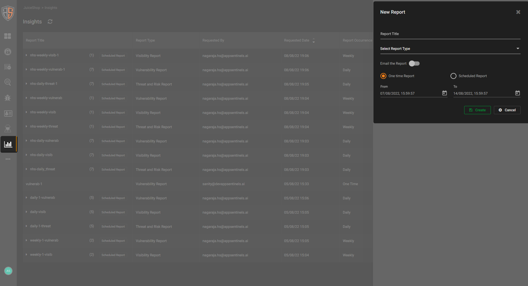 - Email report - an emailing option to send the reports.